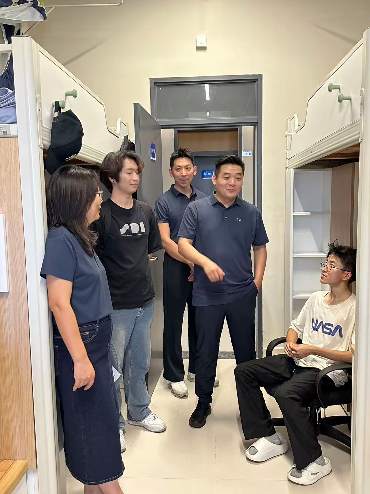 报到当日,学院院长霍裕达、党总支副书记张贵君带领2025级班主任、辅导员及班导团队深入新生宿舍,与同学们亲切交流,细致询问住宿适应与生活需求,用行动传递学院的温暖与牵挂。从报到完成到安顿入住,我们愿以每一份贴心关怀,陪你踏实迈出大学第一步。