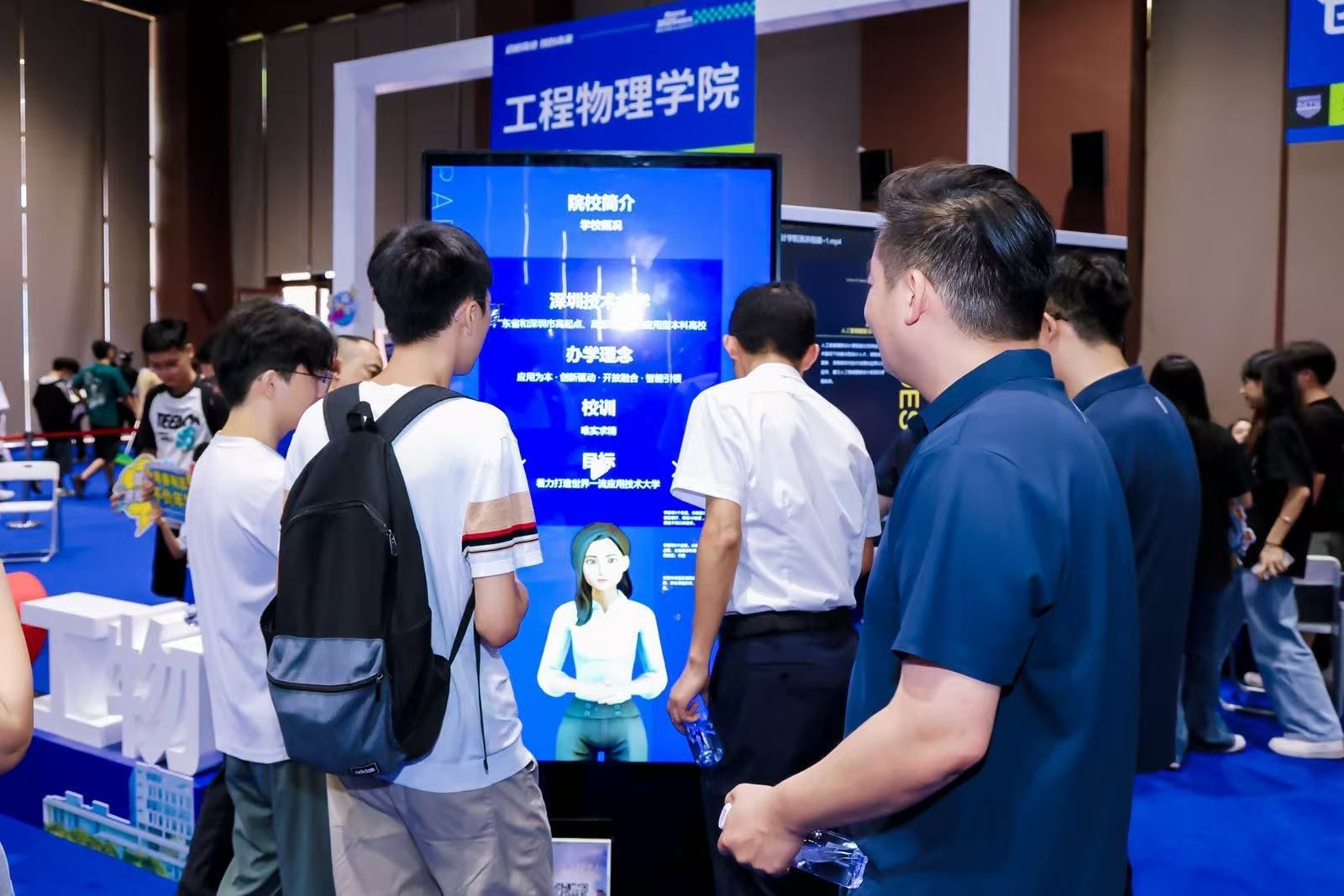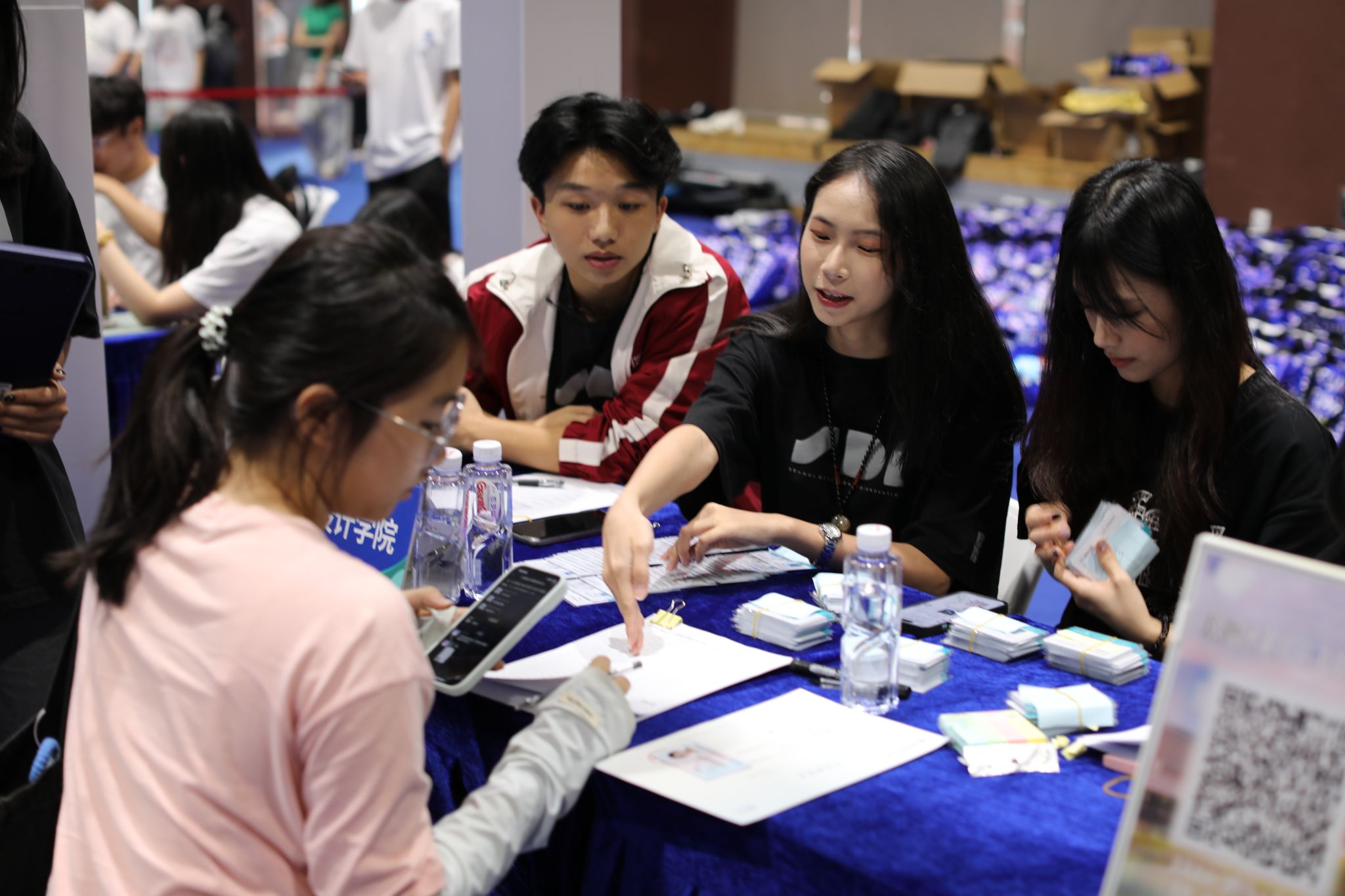 在迎新现场,学院用AI智能体赋能新生迎新工作,构建3D数字人智能校园助手,通过AI语音互动、个性化导航和实时应答系统,为新生提供全方位的融入性指引。