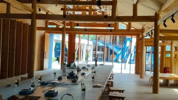 7月16日,实践队一行抵达榕江,首先来到“青于蓝”蓝染艺术中心。