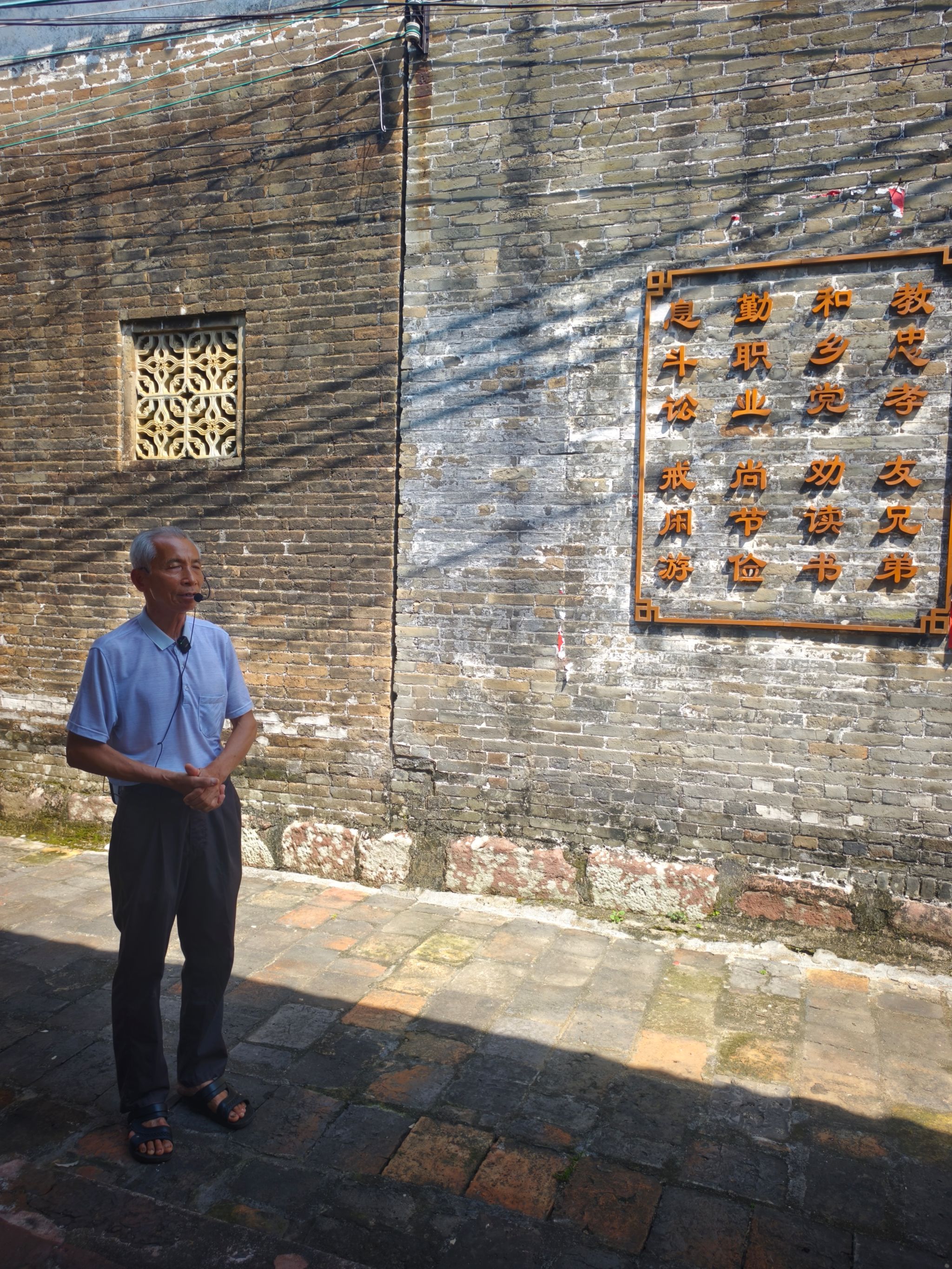 现年76岁的黎和佳佳叔,为团队成员进行了坑尾村历史和高要区家训廉政教育基地的详细讲解,并接受了团队的采访。