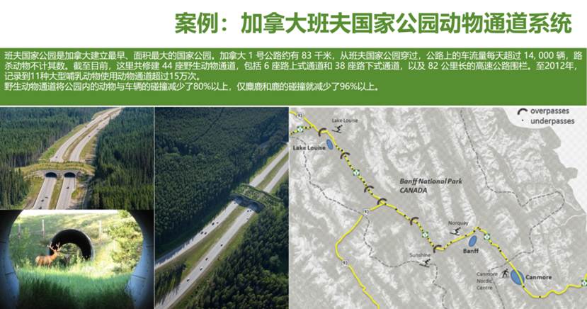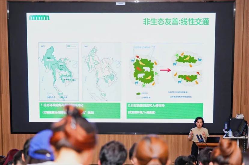 讲座中还展示了许多丰富的国际案例:在加拿大班夫国家公园,动物专用通道让路杀事故减少了80%;在澳大利亚圣诞岛,为红蟹建起的“蟹桥”,让数千万只红蟹顺利完成迁徙;在新西兰,蓝企鹅、蝾螈都有专属的地下通道;在伦敦摄政运河,生态浮岛成了鸟与鱼的新家园……