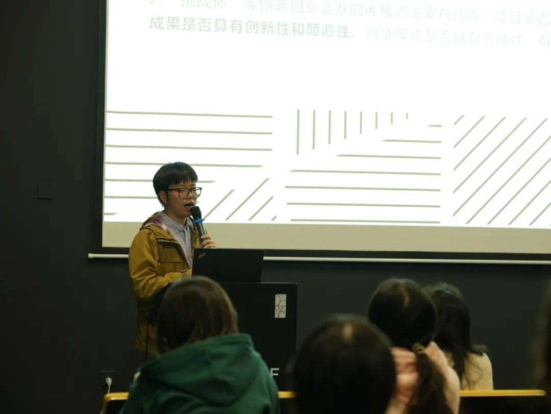 为使同学们对大赛有更直观的认知,冯老师首先展示了一段往届优秀选手的路演案例,选手精彩的发挥让在场同学初步了解了比赛形式。