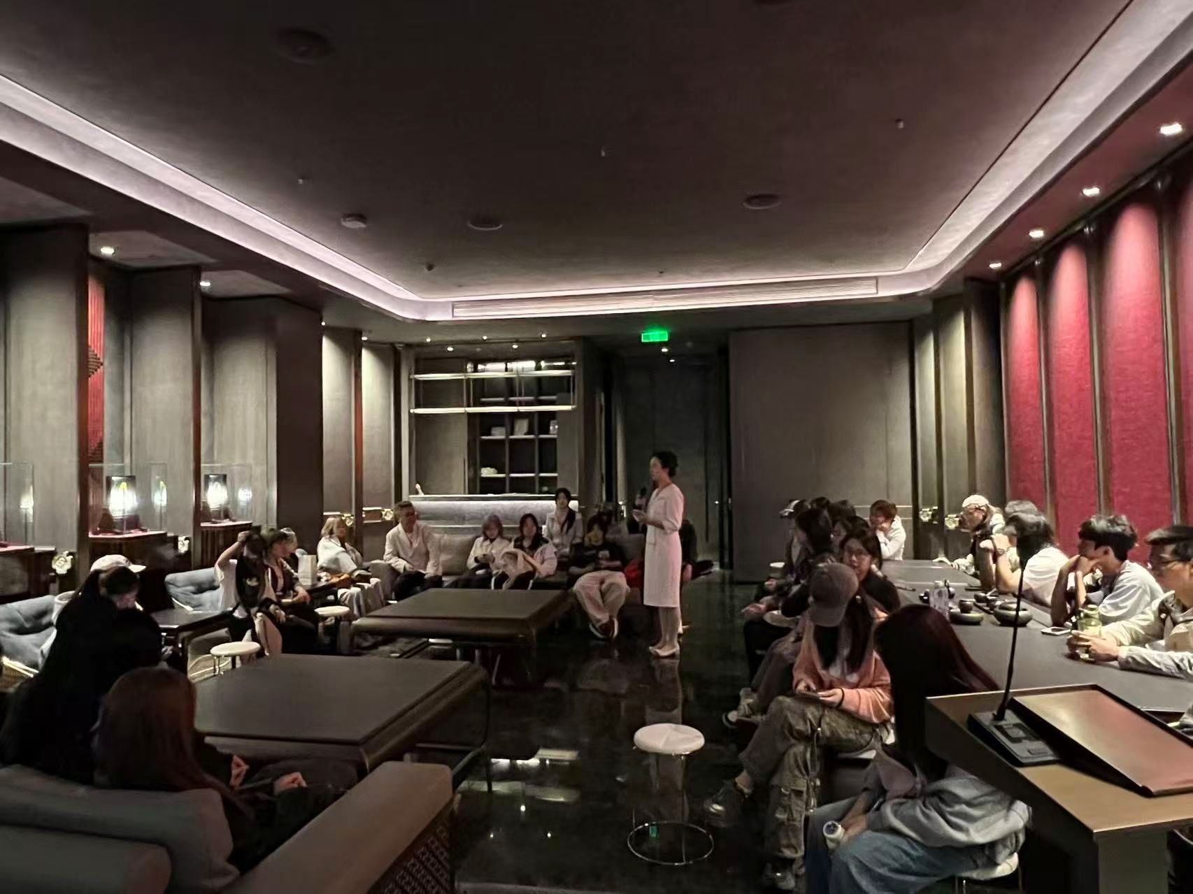 座谈结束后,在杜半会长的带领下,大家参观了博物馆的常设展览。展览共分为五大展区:“自然之宝”“物佩之美”“设计之光”“深圳之路”与“湾区之梦”。从矿物晶体到工艺美学,再结合光影设计的沉浸式呈现,这趟参观如同一堂生动的沉浸式课堂,展现了珠宝从古至今的发展历程。