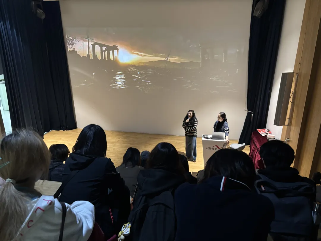 在活动的第三部分,丝路视觉数创总监尹芳芳女士为同学们带来了AI重塑艺术与科技行业的分享。她介绍了AI在视觉艺术、影视制作等领域的应用,并鼓励同学们主动拥抱这一趋势,重视跨学科学习,尽早掌握AI工具逻辑,为未来的职业生涯做好准备。
