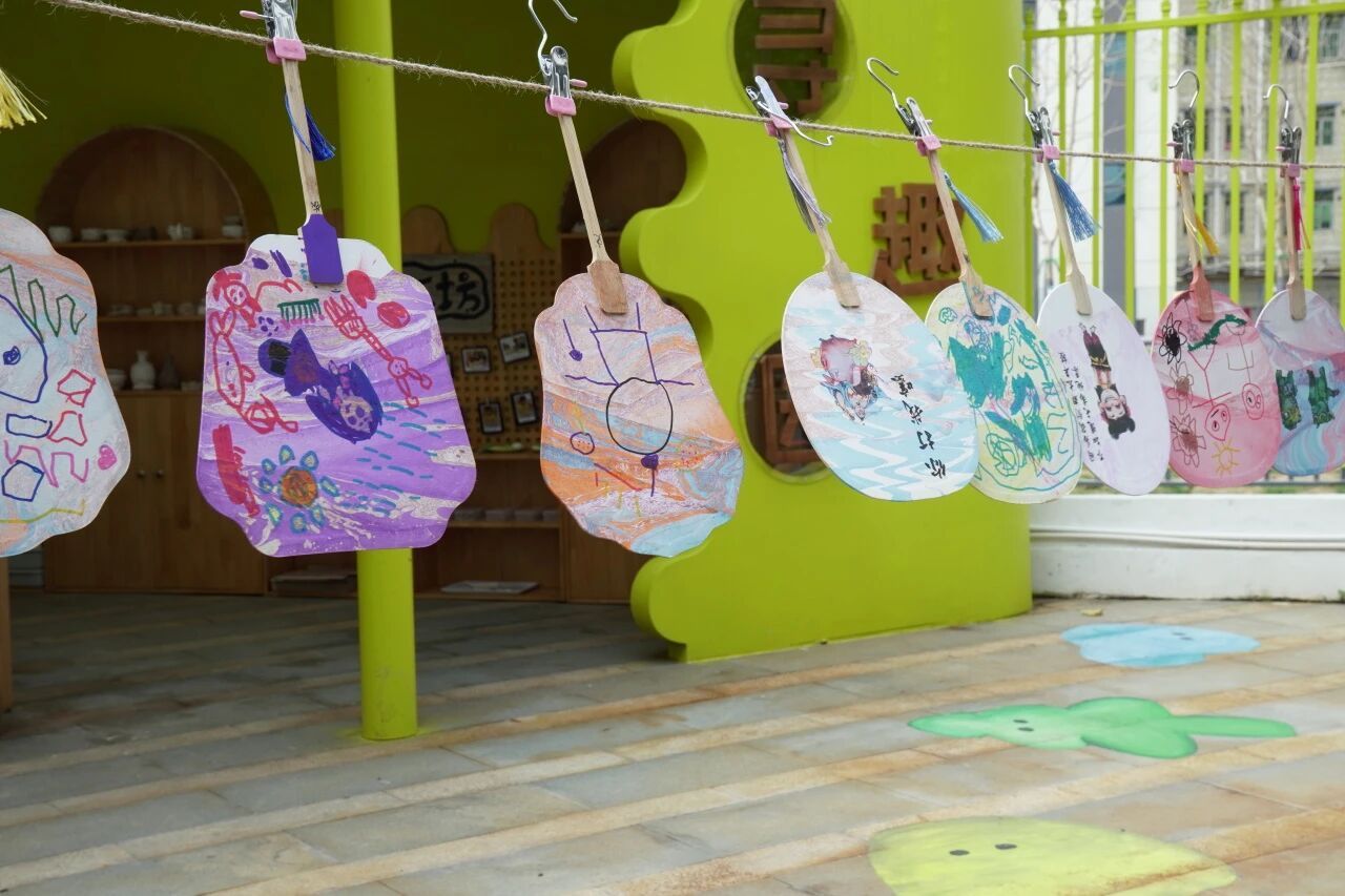 在“干花团扇制作体验活动”中,孩子们将风干的玫瑰、满天星等花材精心粘贴在团扇上,创作出各具特色的“花语扇面”。活动特别选用天然风干花材,既展现了植物自然之美,又传递了环保理念。